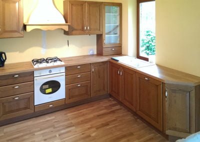 | Kuchnia wykonana z litego drewna dębowego. | |