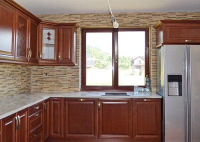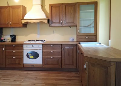 Taka zabudowa jest dla nas zawsze dużym wyzwaniem ponieważ, klienci którzy zamawiają kuchnię klasyczną z drewna najczęściej mają jasno sprecyzowane oczekiwania. Meble drewniane swoim wyglądem zawsze odnoszą się do określonych już kanonów piękna i estetyki.