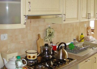 Do zabudowy kuchni drewnianych stosujemy osprzęt w postaci uchwytów, zawiasów, szuflad, koszy cargo znanych producentów akcesoriów kuchennych takich jak Blum, Hettich, Peka. Wysoka jakość stosowanych elementów wyposażenia sprawia dużą przyjemność użytkowania kuchni klasycznej.