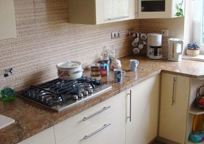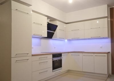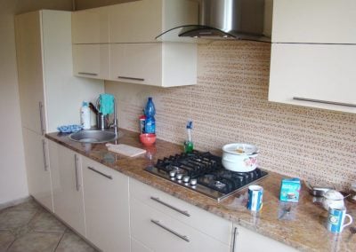 | Fronty wanilia lakier z połyskiem, blaty kamienne, uchwyty relingi. | |